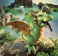 Folkmanis hånddukke grøn drage - superflot med guldvinger
