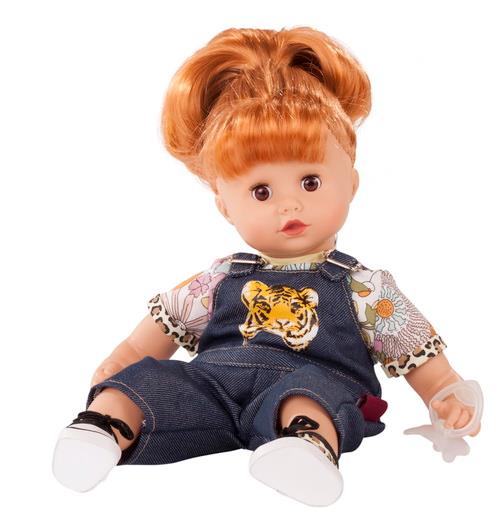 Sød 33 cm Muffin blød babydukke fra Götz. Dukken har rødt hår og brune vippeøjne. Der medfølger en sut. Dukkens hår er i en god kvalitet, så det kan tåle at blive vasket og redt.