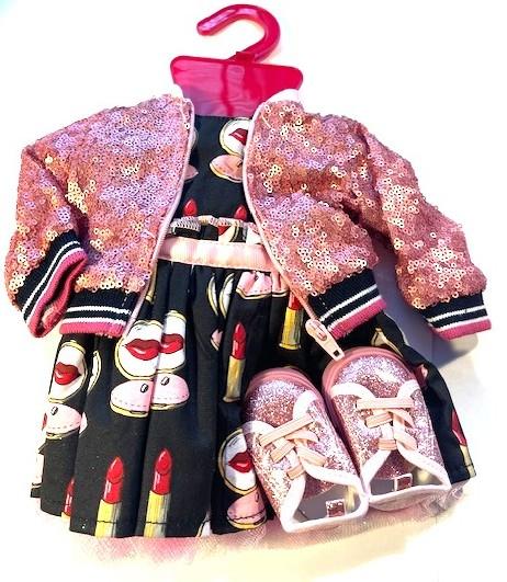 Varekort Götz dukketøj kjole med glitter jakke og sko