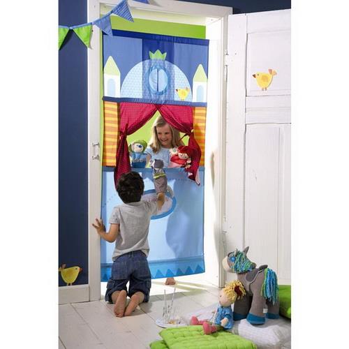 Smart dukketeater fra Haba til ophæg i en døråbning. Mål L 170 x B 78 cm. Der medfølger teleskopstang.