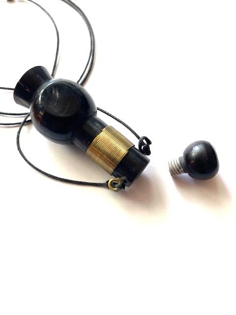 Halskæde med flot håndlavet hornflaske med skruelåg