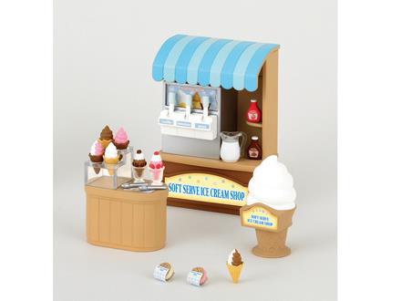 Dejlige is til Sylvanian Familes figurerne. Spændende softicebod med søde små is og tilbehør. Mål: 12,8 x 7,3 x 9,7.