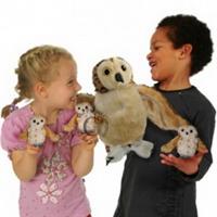 PUPPET Titte-bøh Ugle med 3 fingerdyrs ugleunger